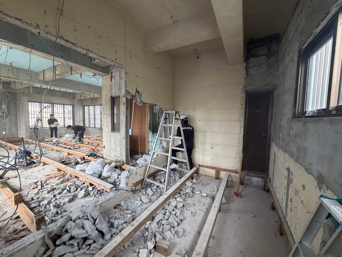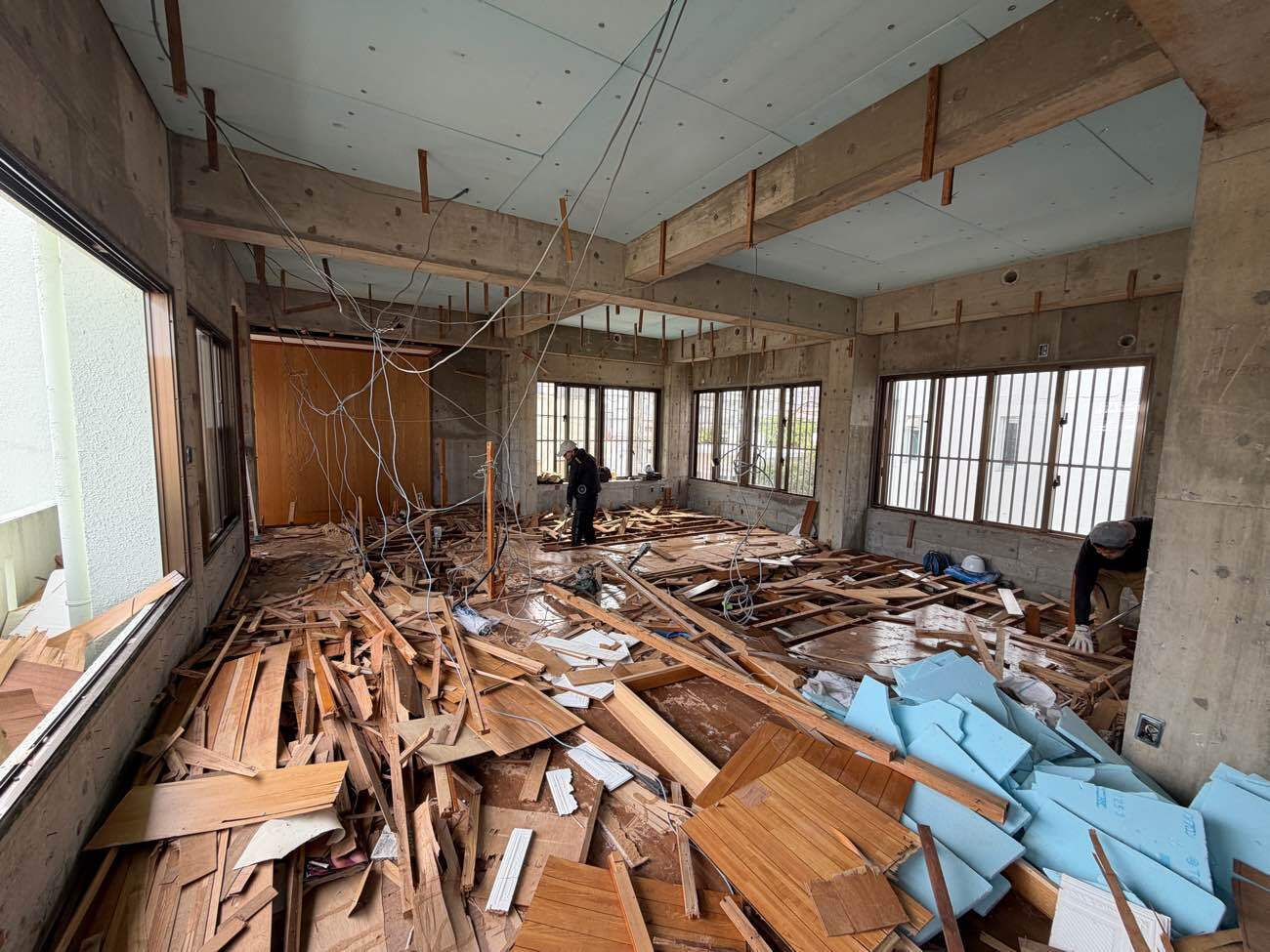 解体作業を終えると、間取りの墨出し・配管工事・内部の下地づくりと、どんどん空間の“骨格”が形になっていきます。