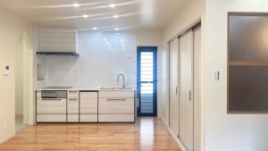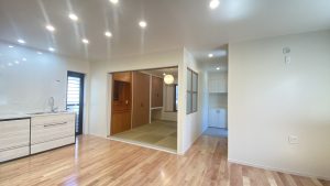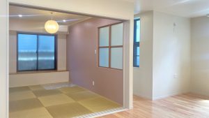 2階は、これまで廊下に沿って個室が並ぶ間取りでしたが、今回のリフォームでは壁を取り払い、広々とした1LDKの空間へと大きく間取り変更を行いました。